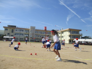 9月24日。今日は全校での予行練習でした。 子供たちは、本番と同じように団の仲間を応援したり、競技に取り組んだりと一生懸命でした。 本番では、今日よりももっと大きな力が発揮できるように期待しています。