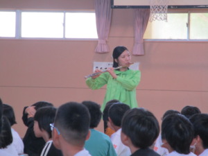 7月22日5時間目 今回も、中川まこと先生、中川ひとみ先生、野口あけみ先生に来ていただき、新川古代神練習会が行われました。