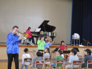子供たちの座席の間に入って演奏してくださったり、楽しい物語を設定して場面にあった曲を披露してくださったり、一緒に足踏みをしたりと子供たちもとても楽しそうでした。