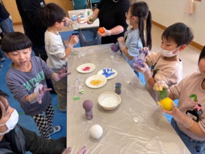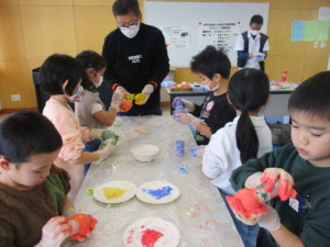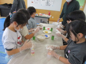 左官職人の講師の方々をお招きして、光る泥団子づくりを体験させていただきました。