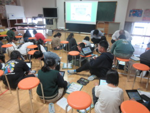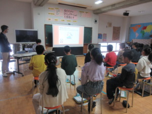 はじめに、車ができるまでの工程をスライドで分かりやすく教えていただきました。便利で豊かな生活を支える企業側の工夫や、環境にやさしい車づくりへの取組から環境を守る大切さを学びました。