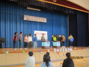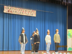 5・6時間目に、卒業を祝う会を行いました。6年生に感謝の気持ち・祝う気持ちを伝えられるように、5年生はじめ各学年が準備をしてきました。