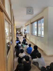 続いて津波警報を想定して3階への避難を行いました。子供たちは終始話をしっかり聞いて真剣に取り組むことができました。今回の訓練を通して、どこにいても地震発生時や津波警報発生時に落ち着いて行動できるように生かしてほしいと思います。