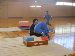 講師の先生の実演を見て、子供たちは「やってみたい!」という気持ちを高め、繰り返し挑戦していました。ポイントを教えてもらうことで、これまでよりも上手く跳べた児童もおり、達成感あふれる表情がたくさん見られました。