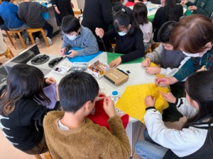2月18日。5年生がティッシュボックスカバーを作りました。