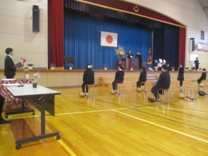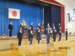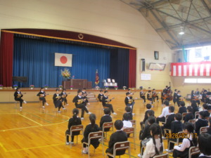 卒業生は、6年間の思い出を振り返り、在校生はこれまでの感謝の言葉の気持ちを伝えました。また、卒業生からはマンドリン演奏「チェリー」を、在校生からは合唱「大空がむかえる朝」を、それぞれ贈りました。
